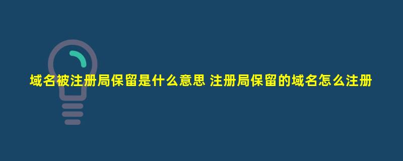 文章摘要:域名被注册局保留是什么意思 注册局保留的域名怎么注册