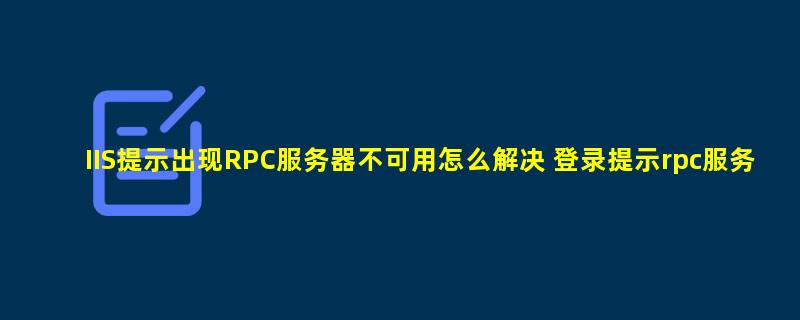 文章摘要:IIS提示出现RPC服务器不可用怎么解决 登录提示rpc服务器不可用